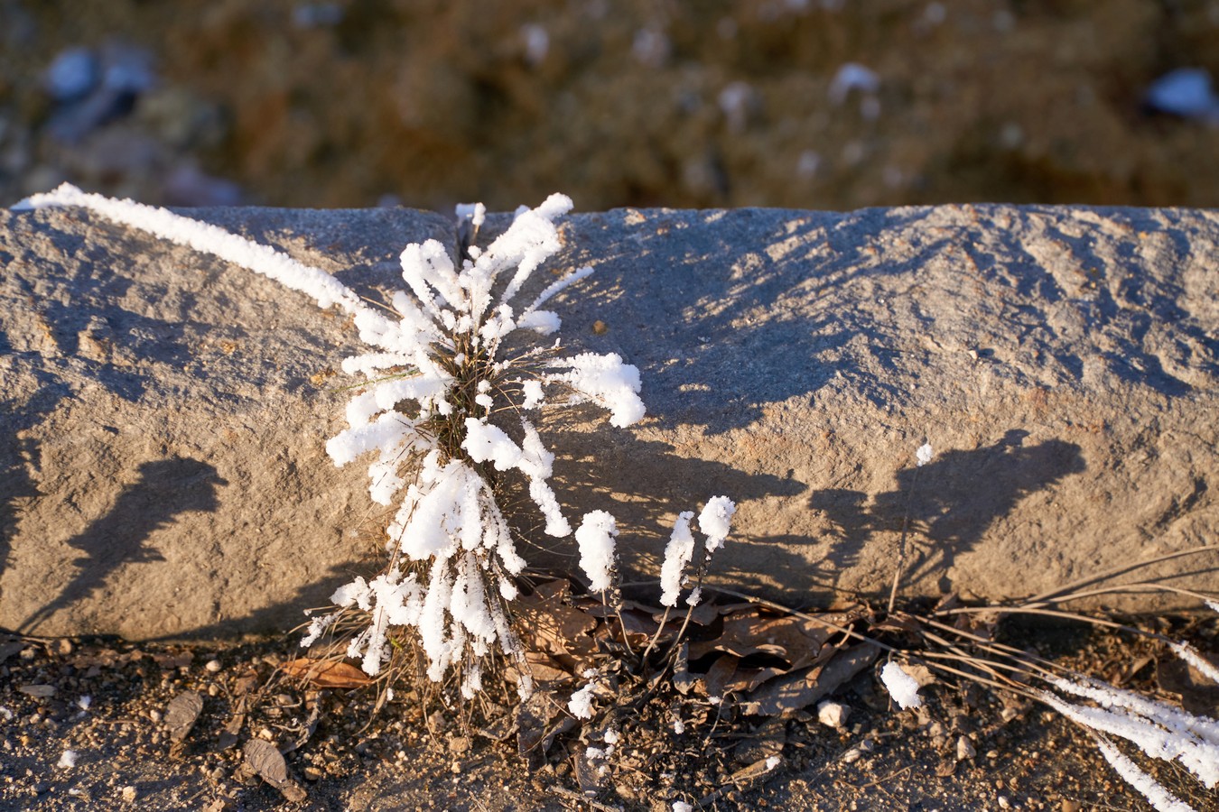 Die Sonne brach gestern endlich durch und liess die mit Eiskristallen überzogenen Pflanzen vor einem blauen Himmel leuchten.
